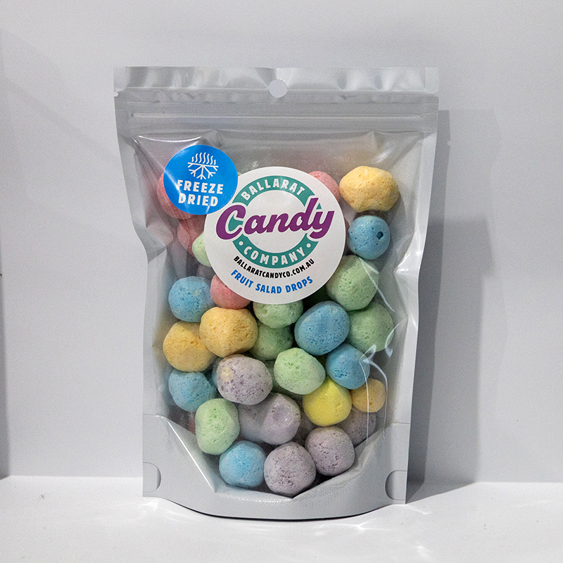 60 g bag. A jubilant medley of passionfruit, raspberry, lime, pineapple, and an orange crush that'll make your taste buds dance with delight with every crunchy bite.