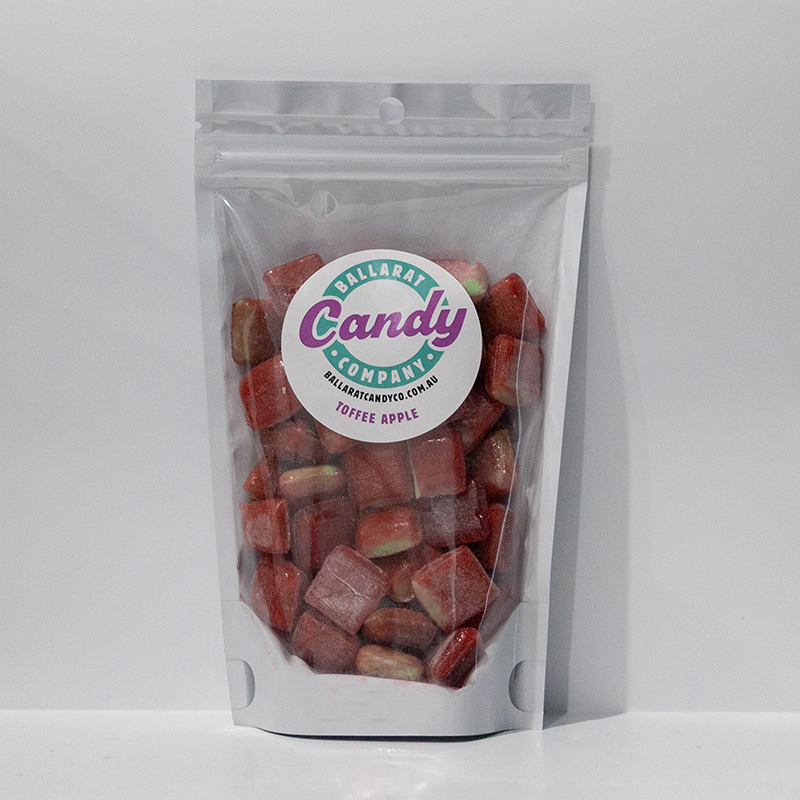 250 g bag. Savour the nostalgic flavour of our toffee apple drops! These hard-boiled classics combine the rich, buttery sweetness of toffee with the crisp, tangy taste of apple, creating a long-lasting treat that’s a delightful favourite.
